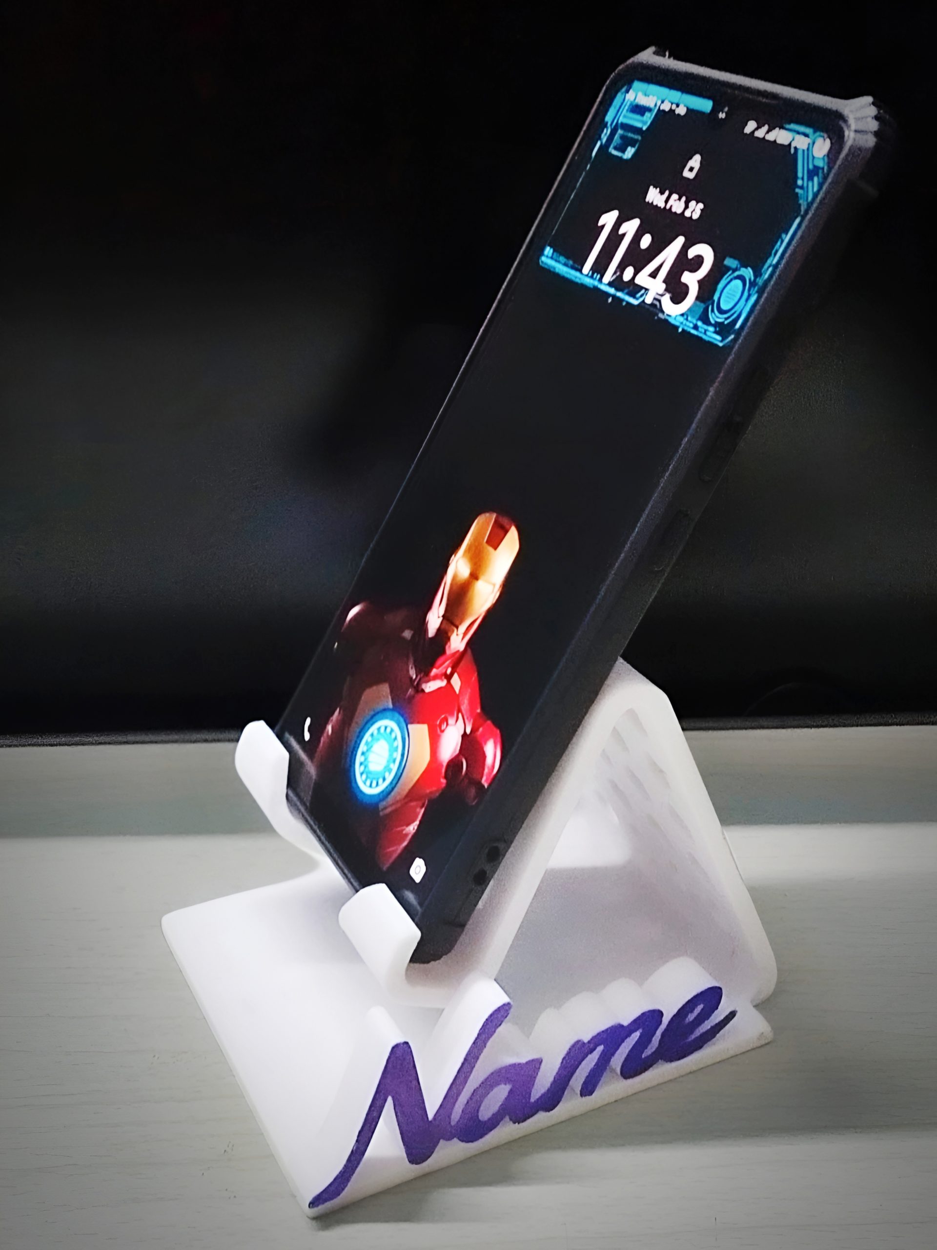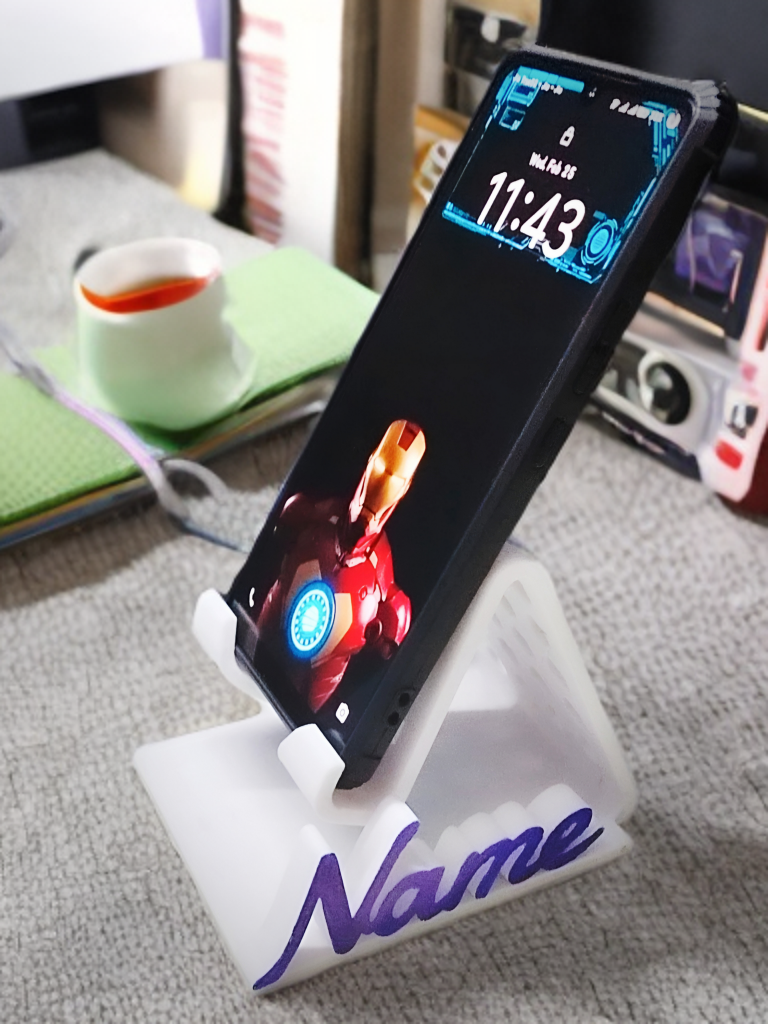 Mobile stand for desk with customized name placed, Stable square shape based,